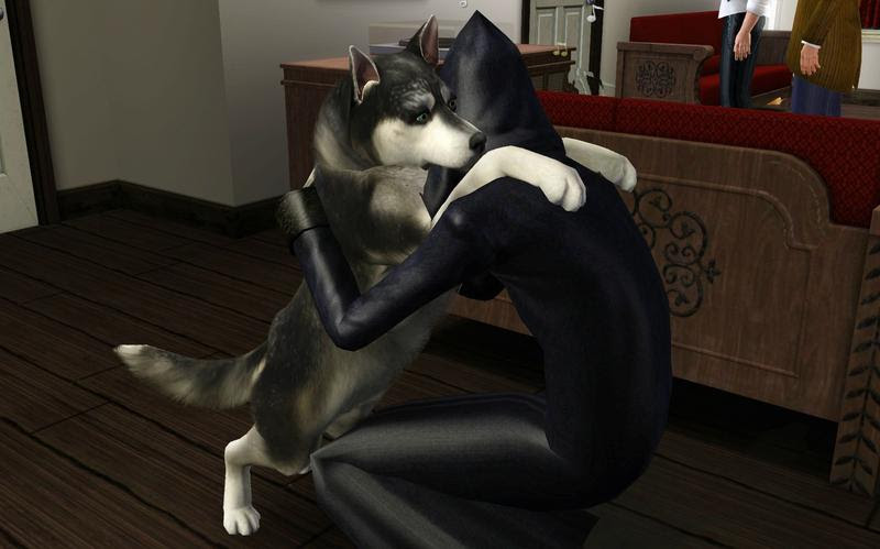 You know one of my favourite things about The Sims is how expressive the characters can be. Take this picture for instance- in it Rafferty is cheating on his girlfriend, and I find I can't take my eyes off Floyd the dog who is giving Dani some serious side eye. It's beautiful, it really is.